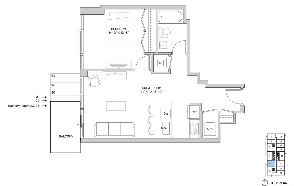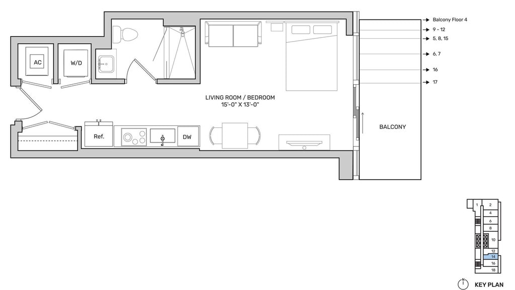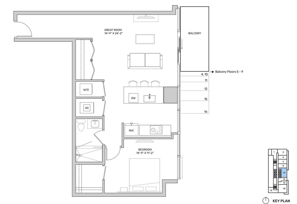 Estudio, 1 Baño, 537 pies²Disponible AhoraGalería del Modelo