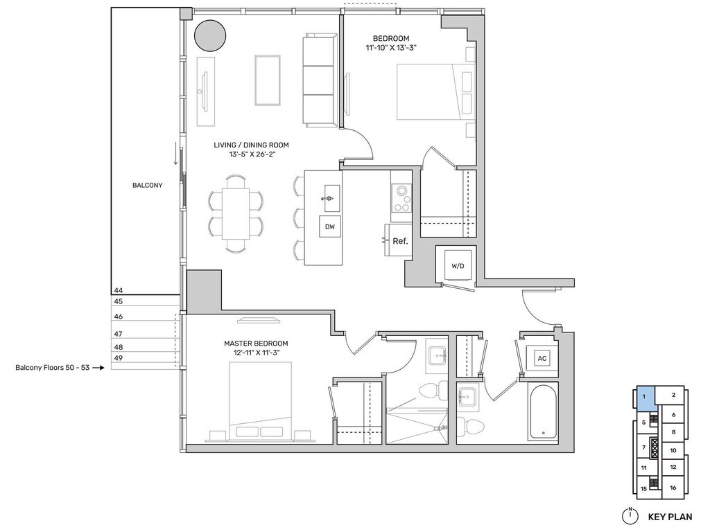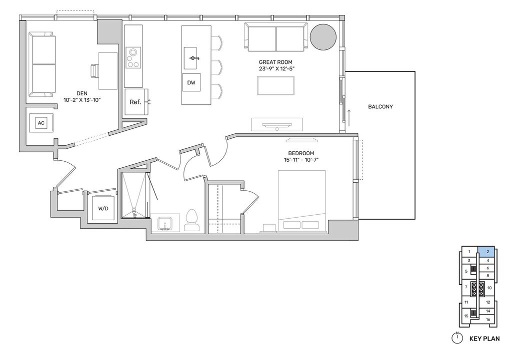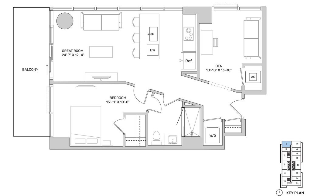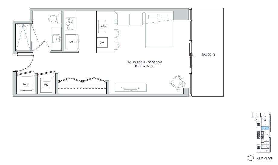 Modelo de apartamento: S8Desde $2,430Estudio, 1 Baño, 537 sq ftDisponible Ahora![]()