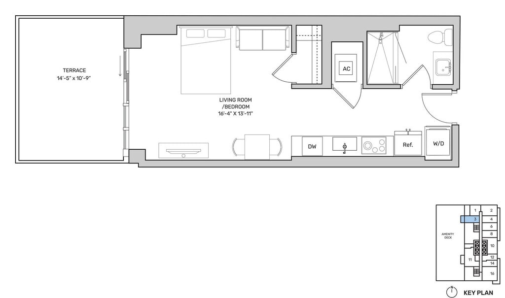 Estudio, 1 Baño, 532 pies²Disponible AhoraGalería del Modelo