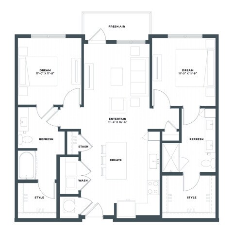 2 Dormitorios, 2 Baños, 1162 pies²Galería del Modelo