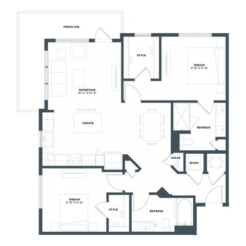 Modelo de apartamento: B22 Dormitorios, 2 Baños, 1162 sq ftNo Disponible![]()