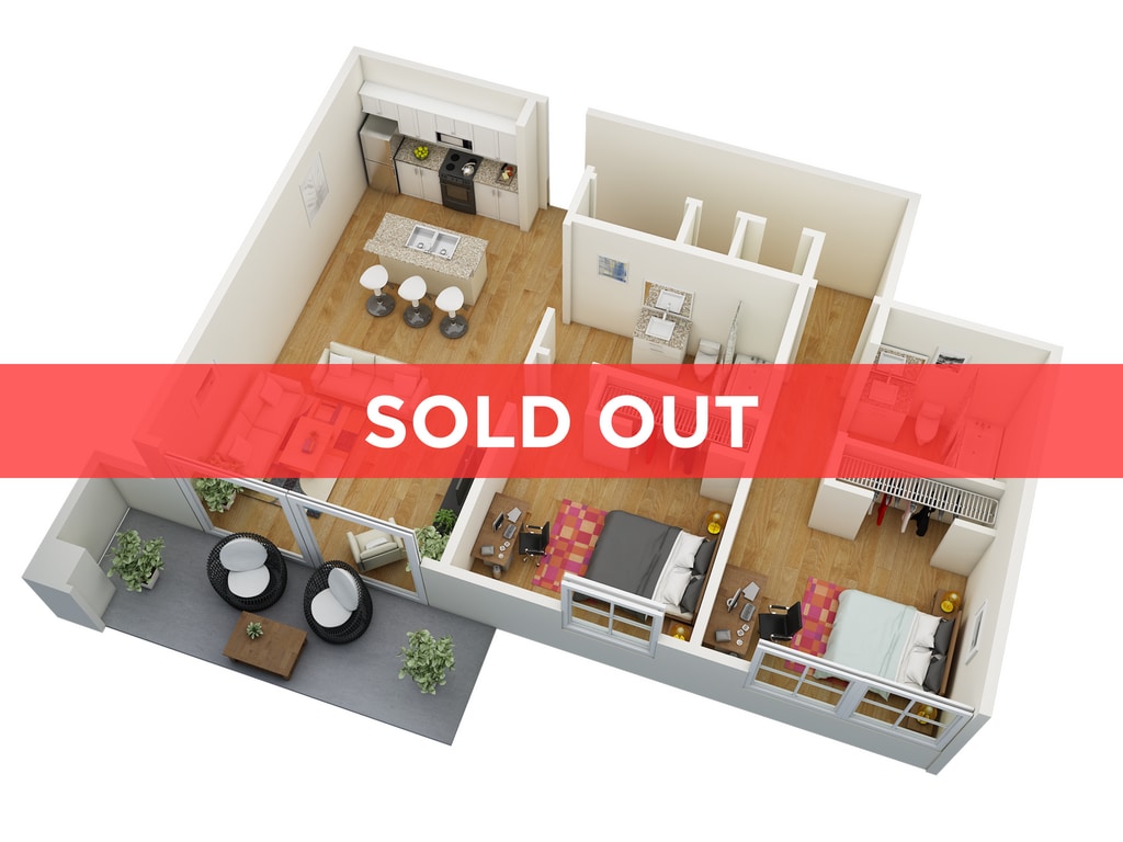 2 Dormitorios, 2 Baños, 942 pies²Disponible Aug 7Galería del Modelo