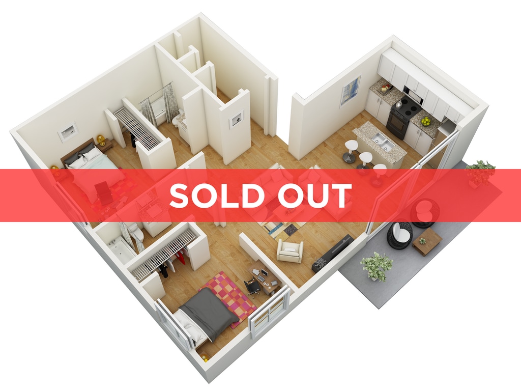 Modelo de apartamento: B2 | Two Bedroom2 Dormitorios, 2 Baños, 942 sq ftDisponible August 7, 2026![]()