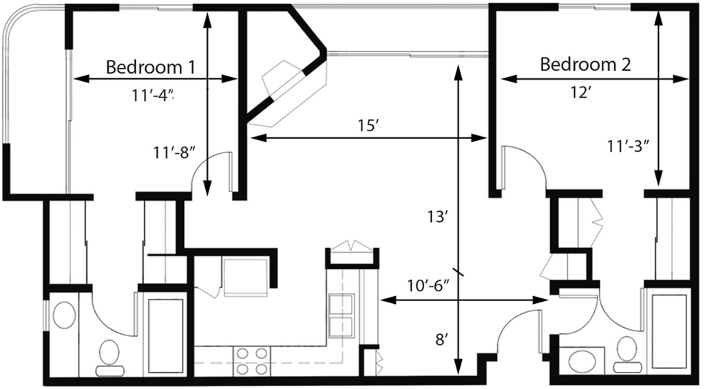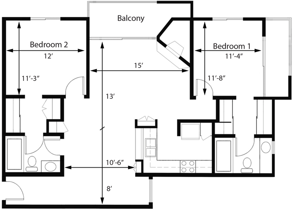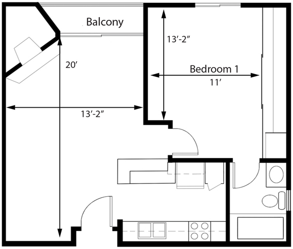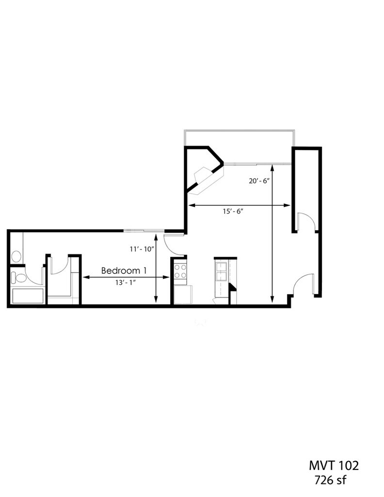 1 Dormitorio, 1 Baño, 726 pies²El más grandeEsta opción tiene las unidades más grandes para este modeloGalería del Modelo
