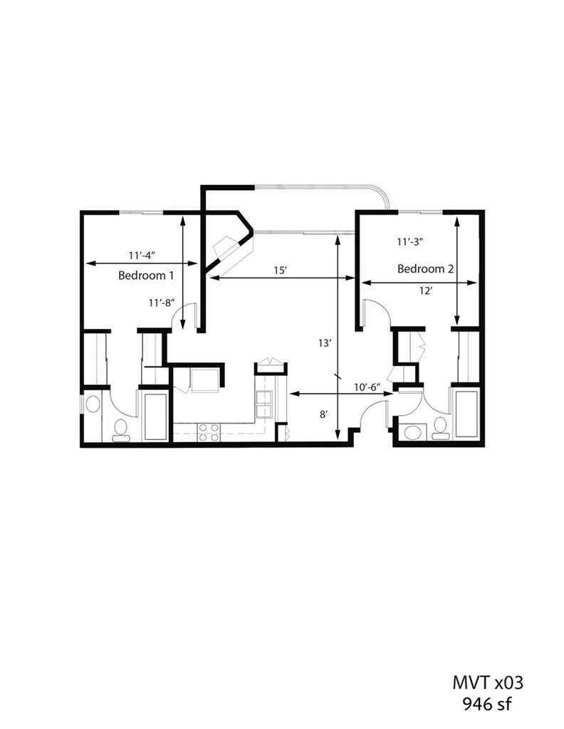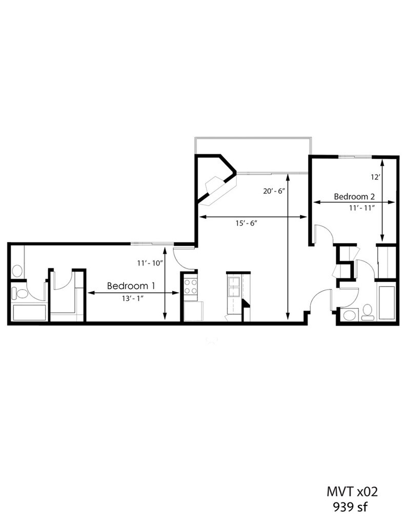 1BR 1BA - FLOOR PLAN C - 1441 MIDVALE