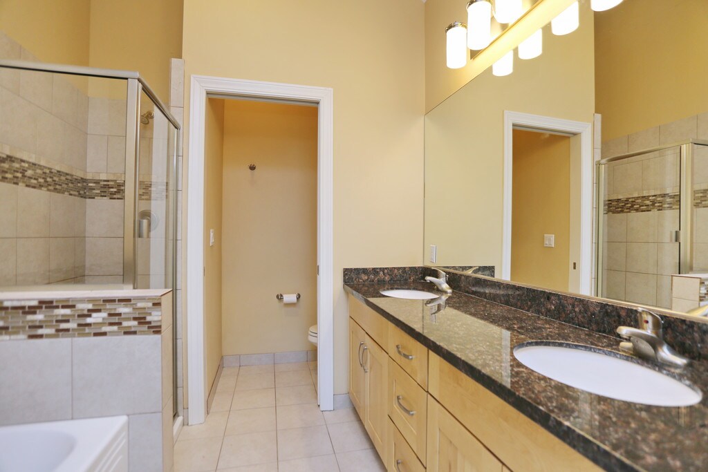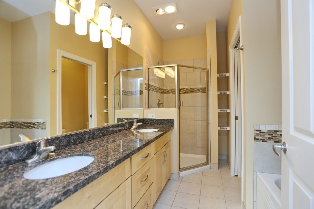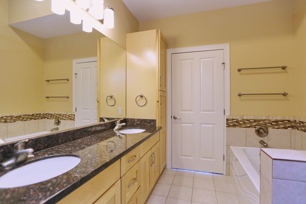 - Baños de la loseta con vanidad doble