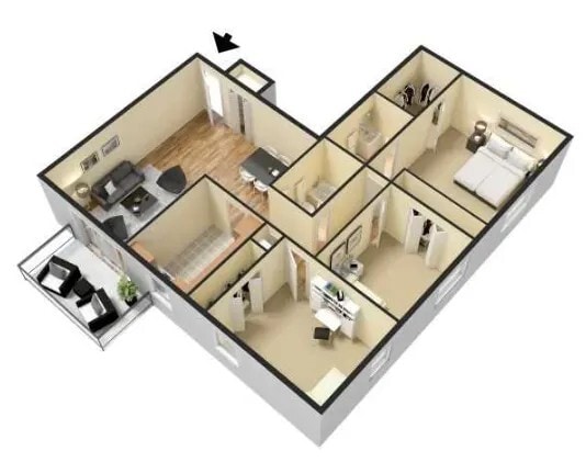 Modelo de apartamento: 3 Bed 2 BathDesde $1,7103 Dormitorios, 2 Baños, sq ftDisponible Ahora![]()