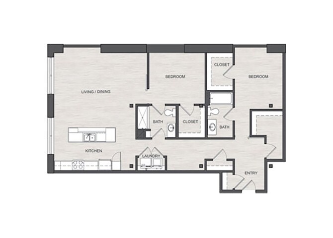1 Dormitorio, 1 Baño, 890 pies²Disponible AhoraGalería del Modelo