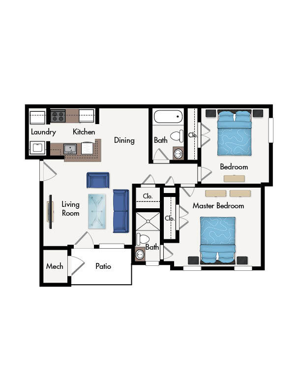 2 Dormitorios, 2 Baños, 990 pies²Galería del Modelo