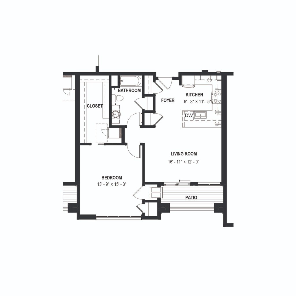 1 Dormitorio, 1 Baño, 755-951 pies²Disponible AhoraGalería del Modelo