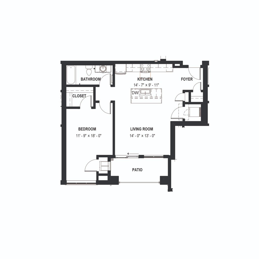 Estudio, 1 Baño, 624 pies²Galería del Modelo