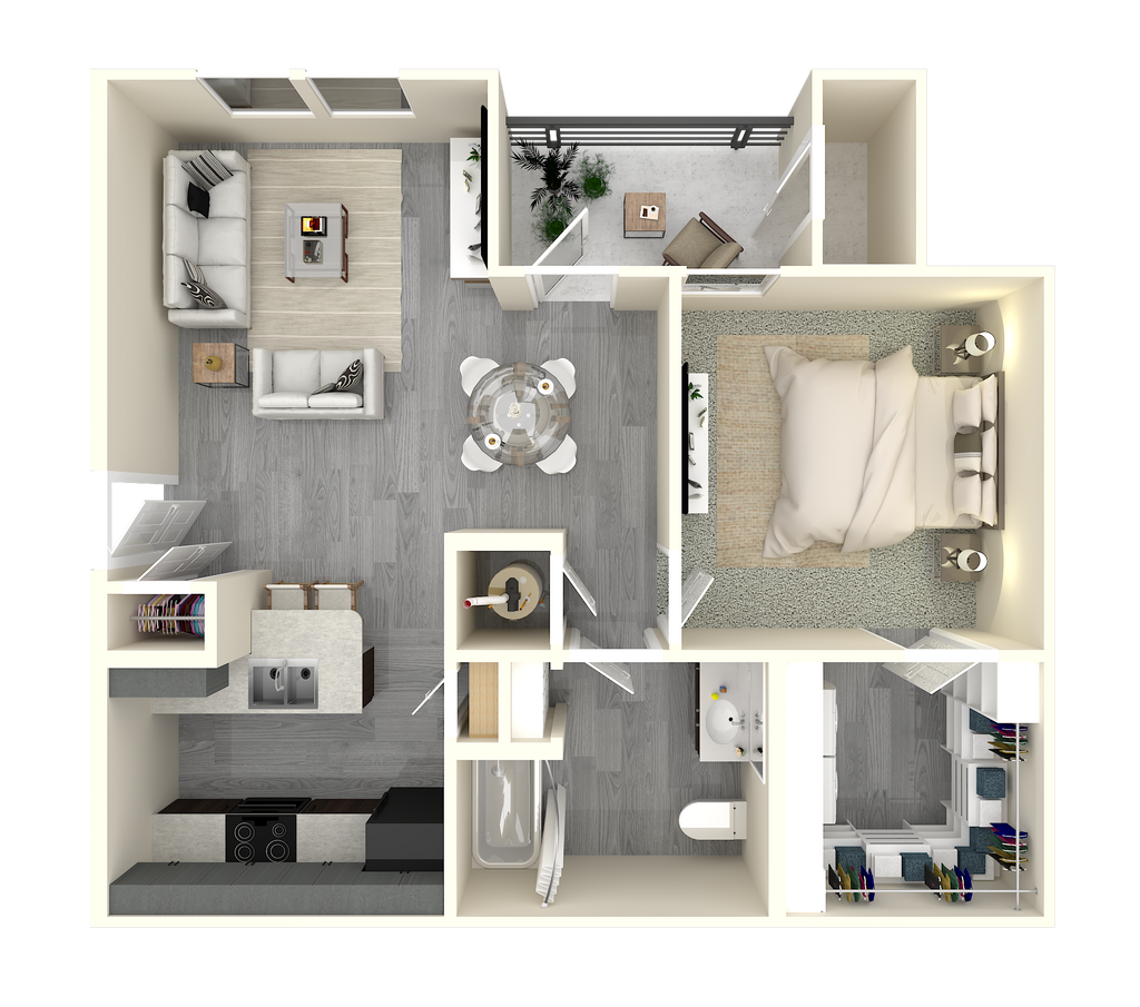 1 Dormitorio, 1 Baño, 754 pies²Disponible AhoraGalería del Modelo