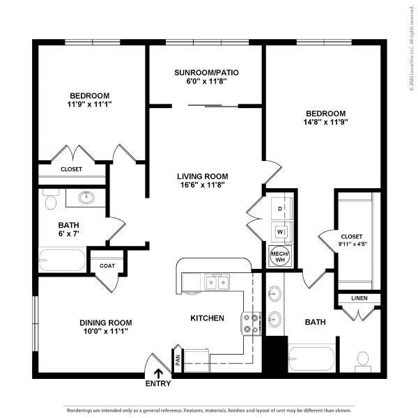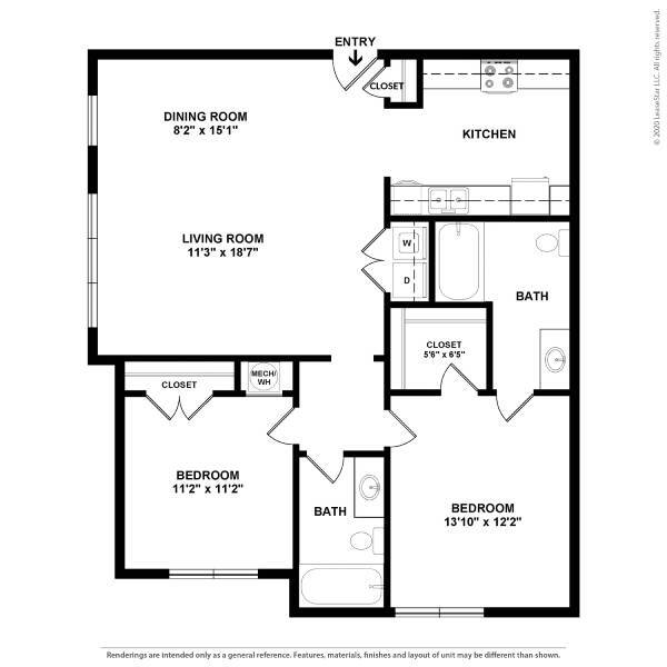 Modelo de apartamento: Bankston2 Dormitorios, 2 Baños, 1023 sq ftDisponible Ahora![]()