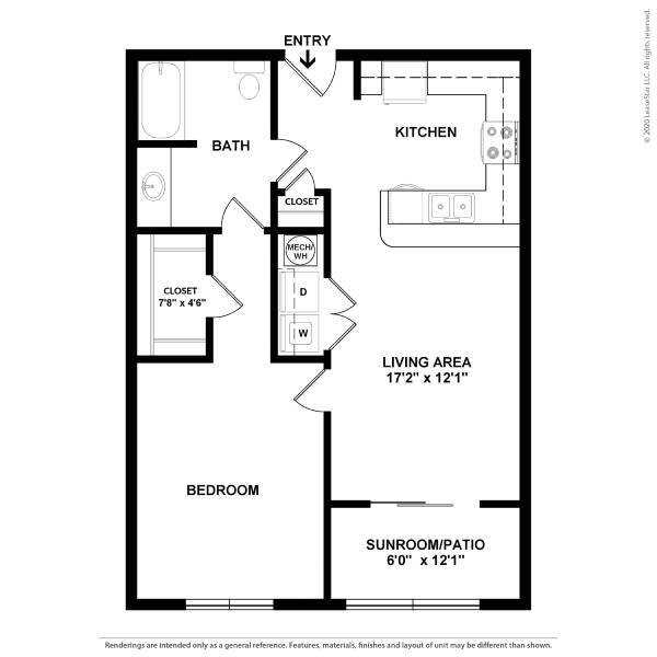 1 Dormitorio, 1 Baño, 818 pies²Galería del Modelo
