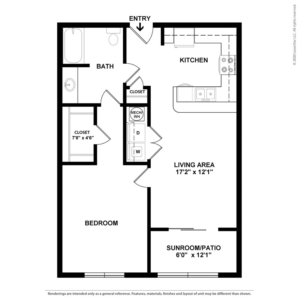 Modelo de apartamento: Bancroft1 Dormitorio, 1 Baño, 739-826 sq ftDisponible Ahora![]()