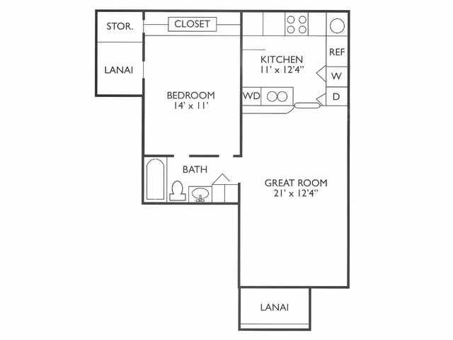 Modelo de apartamento: One Bedroom One Bath$1,1351 Dormitorio, 1 Baño, 673 sq ftNo DisponibleOne Bedroom One Bath - Plano 1 2 Dormitorios