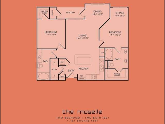 Modelo de apartamento: A2Desde $1,2291 Dormitorio, 1 Baño, 698 sq ftDisponible Ahora![]()