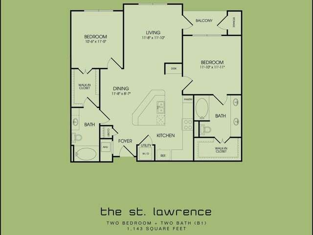 Modelo de apartamento: A1Desde $1,1901 Dormitorio, 1 Baño, 624 sq ftDisponible Ahora![]()