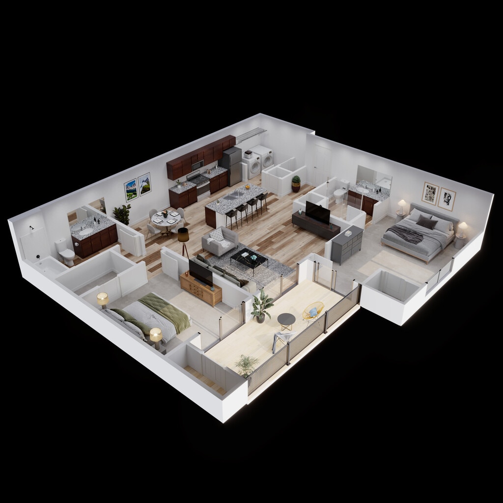 2 Dormitorios, 2 Baños, 1100 pies²Disponible AhoraGalería del Modelo