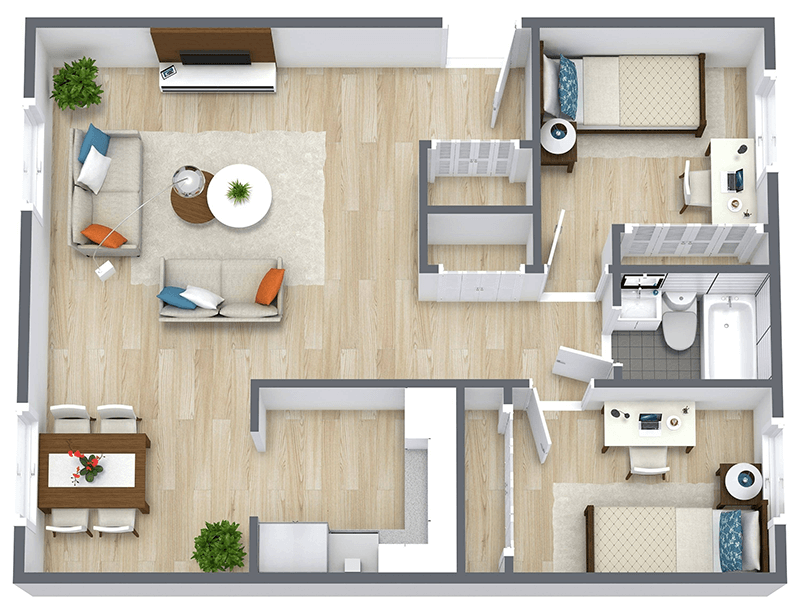 2 Dormitorios, 1 Baño, 820-900 pies²Galería del Modelo