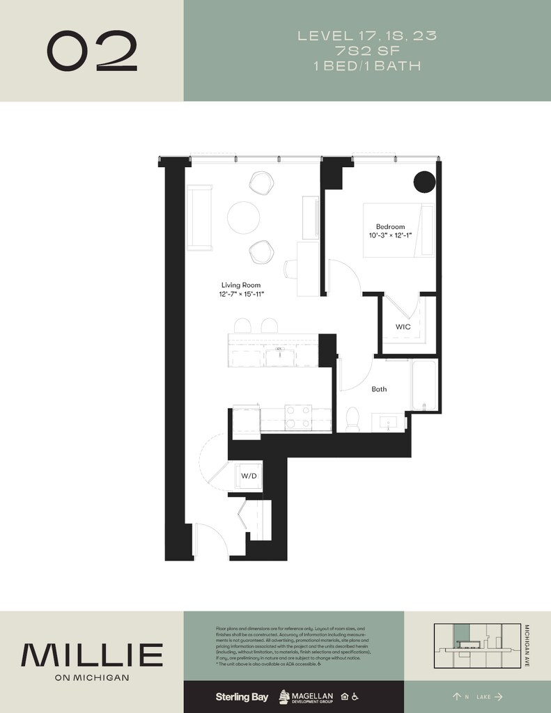 Programa un recorrido hoy mismo. Millie on Michigan ofrece un elevado nivel de vida en Millennium Mile. Ubicado en Michigan Avenue en la cima de la impresionante Millennium Mile, el lujo habitable se combina con el estilo cosmopolita. Despierta con vistas panorámicas del lago Michigan y del horizonte de Chicago. Disfruta de estar a pasos de Millennium Park, el río y el arte y la cultura de primera categoría. Las residencias varían desde estudios hasta apartamentos de dos habitaciones, cuidadosamente terminados con sofisticación y comodidad de inspiración escandinava. Millie ofrece más de 15,000 ft2 de espacios de comodidades de interior y al aire libre que envuelven todo el edificio de manera perfecta comodidad y conveniencia. Las residencias de Millie están ubicadas directamente por encima de CitizenM: un hotel estilo boutique de 280 llaves que cuenta con modernas comodidades metropolitanas. Las impresionantes vistas, los planos de planta abiertos, la accesibilidad para peatones y la naturaleza de uso mixto hacen que MILLIE sea verdaderamente único en cualquier residencia de alquiler en el centro. MILLIE ofrece un estilo de vida inigualable en el corazón de todo lo que el centro de Chicago tiene para ofrecer.