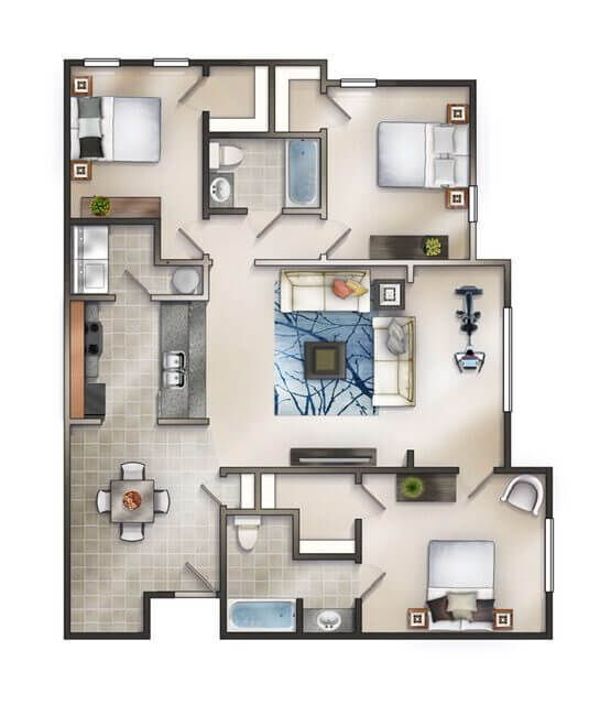 Modelo de apartamento: The AshfordDesde $1,4351 Dormitorio, 1 Baño, 780 sq ftDisponible Ahora![]()