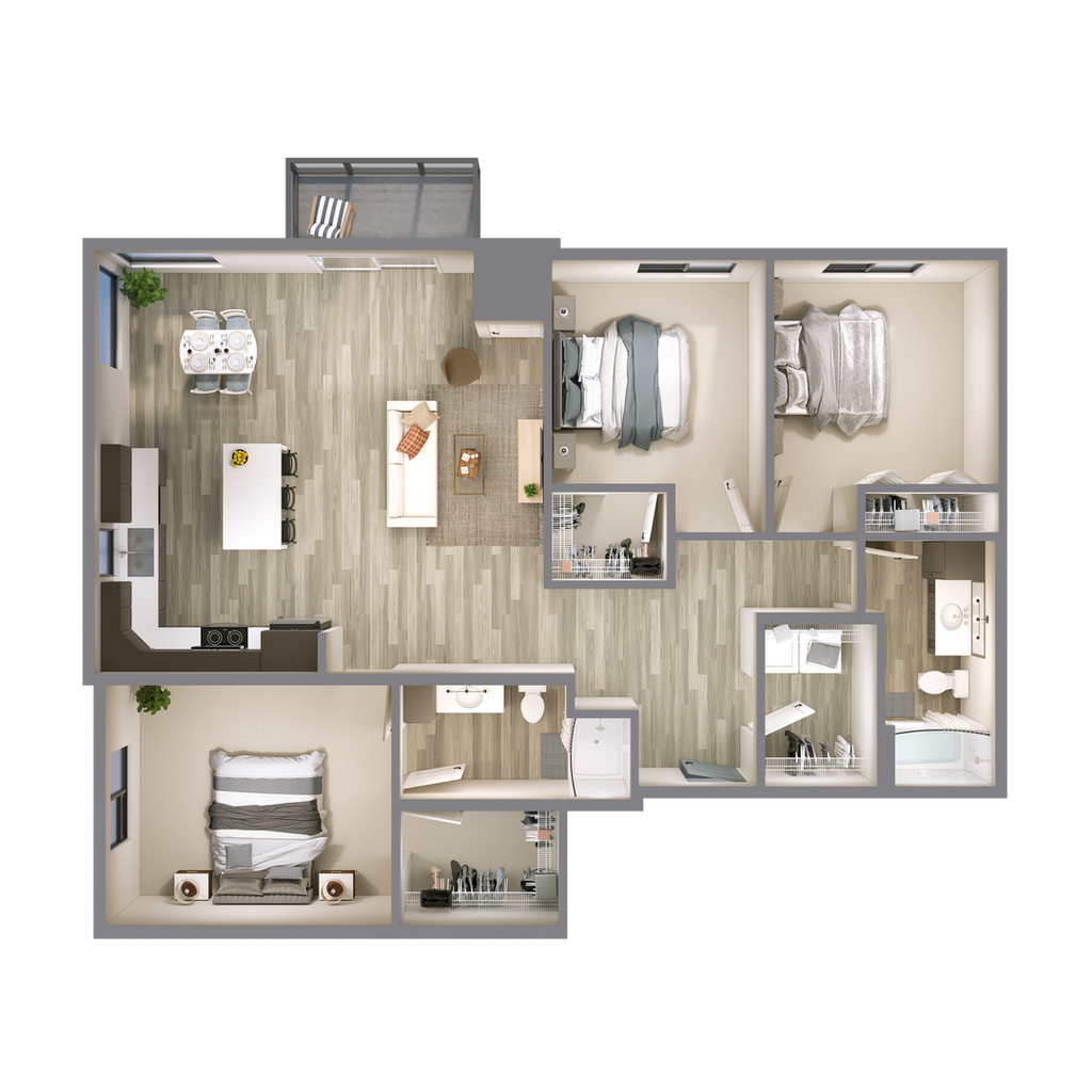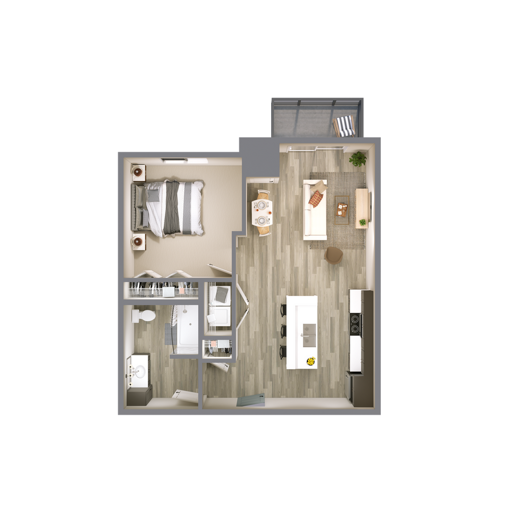 Modelo de apartamento: Kelby (1B)Desde $9951 Dormitorio, 1 Baño, 617 sq ftDisponible Ahora![]()