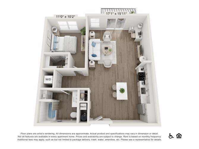 A1-A | 1 Bed | 1 Bath - Plano 1 Los planos de la planta son una interpretación artística. Todas las dimensiones son aproximadas. Los tamaños o el detalle del producto real y sus especificaciones pueden variar. No todas las características están disponibles en todos los hogares para rentar. Los precios y la disponibilidad están sujetos a cambios. El alquiler que se muestra es mensual. Se pueden aplicar ciertos cargos, por ejemplo, entrega de paquetes, recolección de basura, agua, servicios, etc. Depositos varian. Consulta a un representante para conocer detalles.