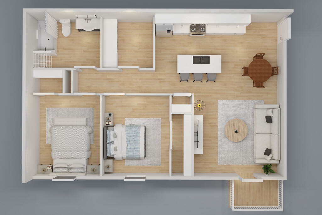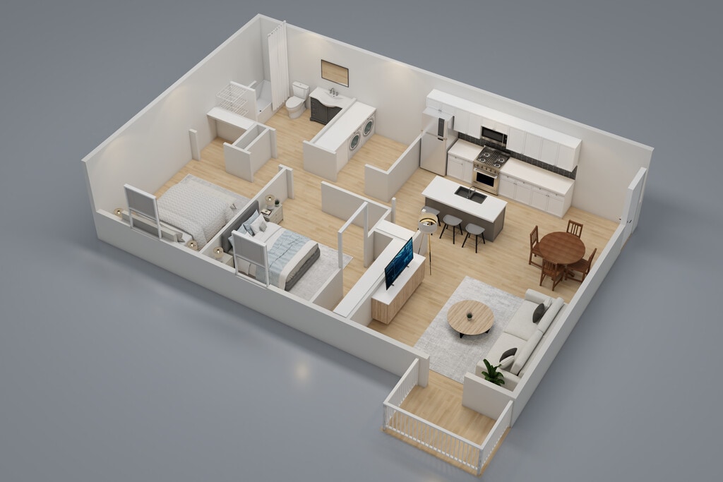 2 Dormitorios, 1 Baño, 930 pies²Disponible AhoraGalería del Modelo