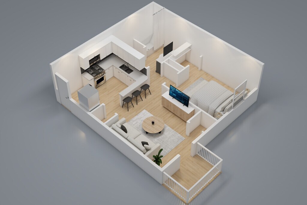 1 Dormitorio, 1 Baño, 580 pies²Disponible AhoraGalería del Modelo