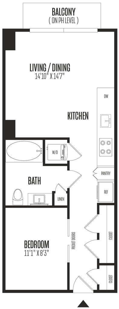 Studio-STU - Plano Unidad de apartamento: 1246Modelo de apartamento: Studio-STU$2,129Estudio, 1 Baño, 665 sq ftDisponible AhoraStudio-STU