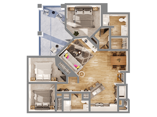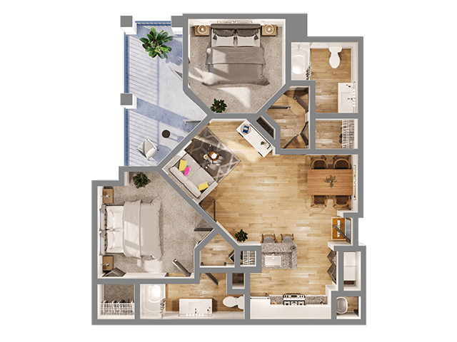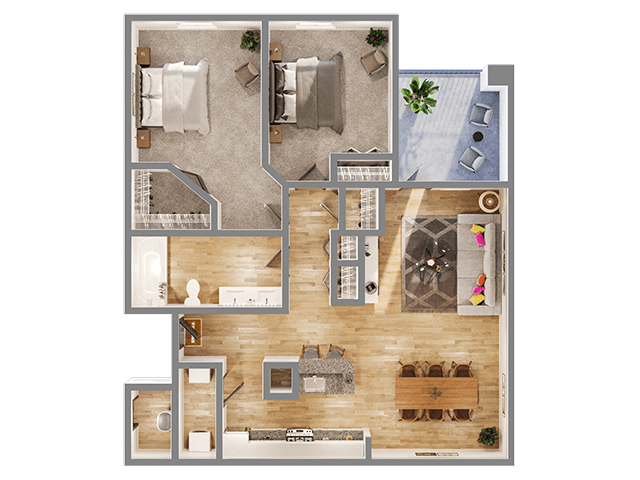 Modelo de apartamento: A2Desde $1,2701 Dormitorio, 1 Baño, 860 sq ftDisponible November 21, 2025![]()