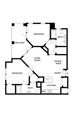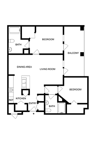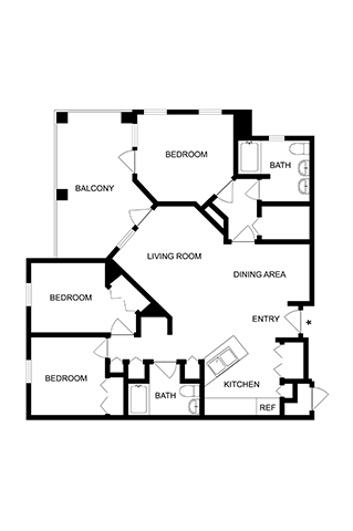 Modelo de apartamento: A3Desde $1,3191 Dormitorio, 1 Baño, 914 sq ftDisponible Ahora![]()