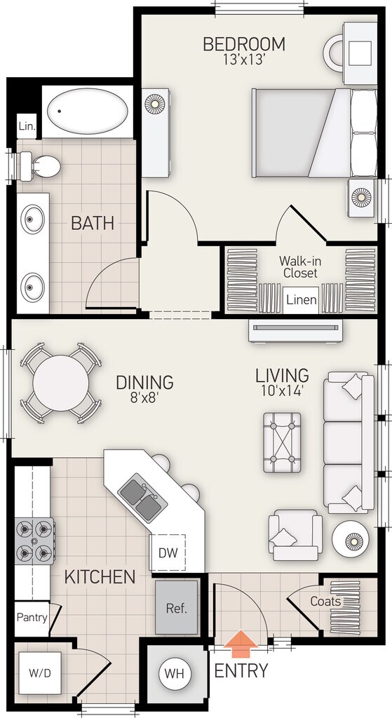 1 Dormitorio, 1 Baño, 763 pies²Disponible AhoraGalería del Modelo