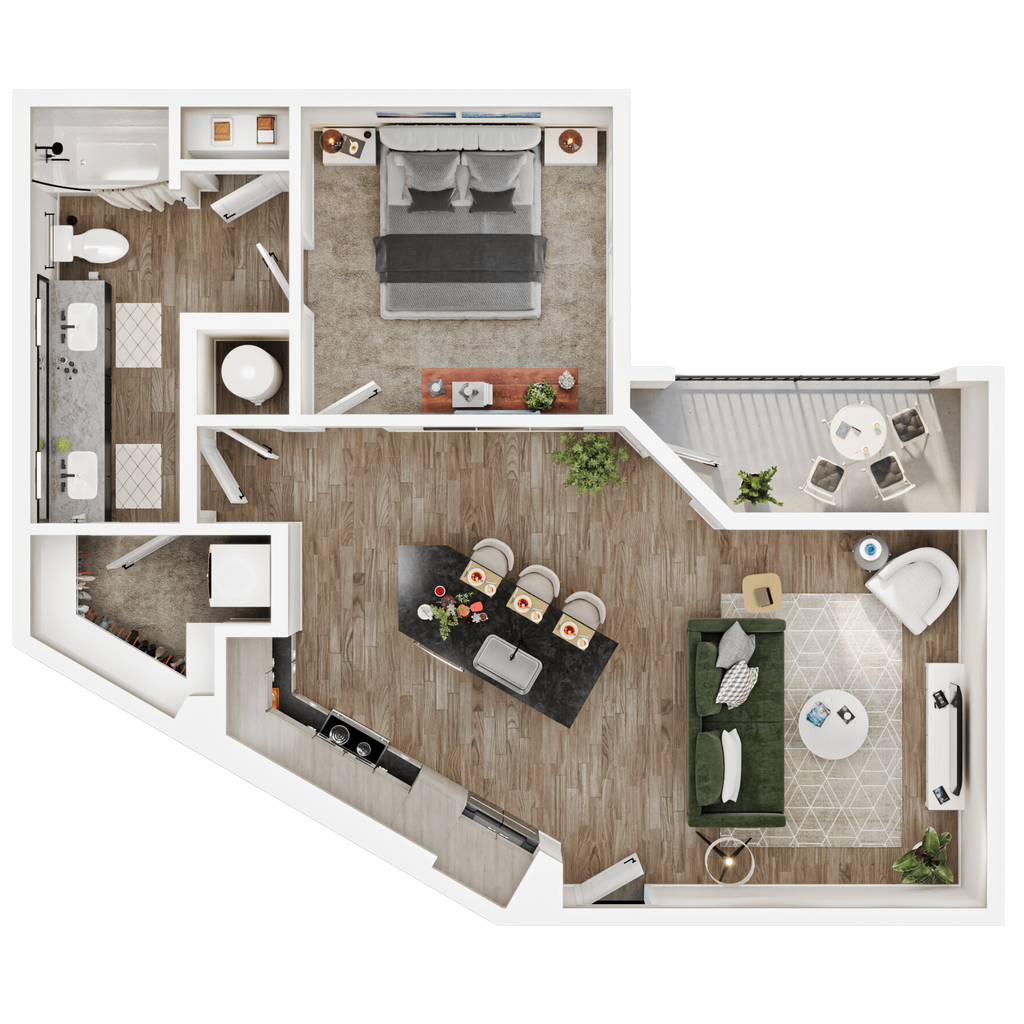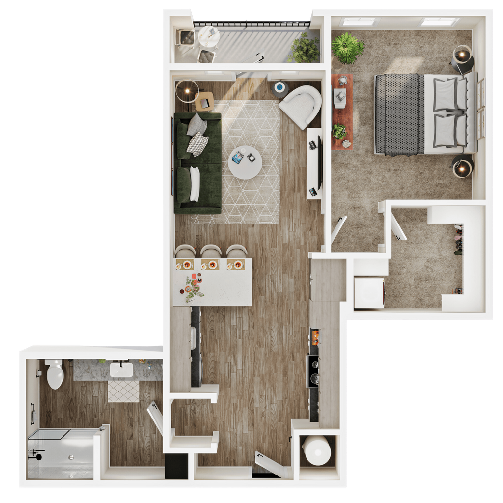 Modelo de apartamento: S1Desde $1,415Estudio, 1 Baño, 605-624 sq ftDisponible Ahora![]()