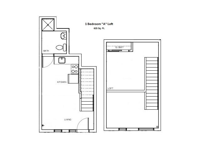 Modelo de apartamento: 1x1-Loft1 Dormitorio, 1 Baño, 625 sq ftDisponible Ahora![]()