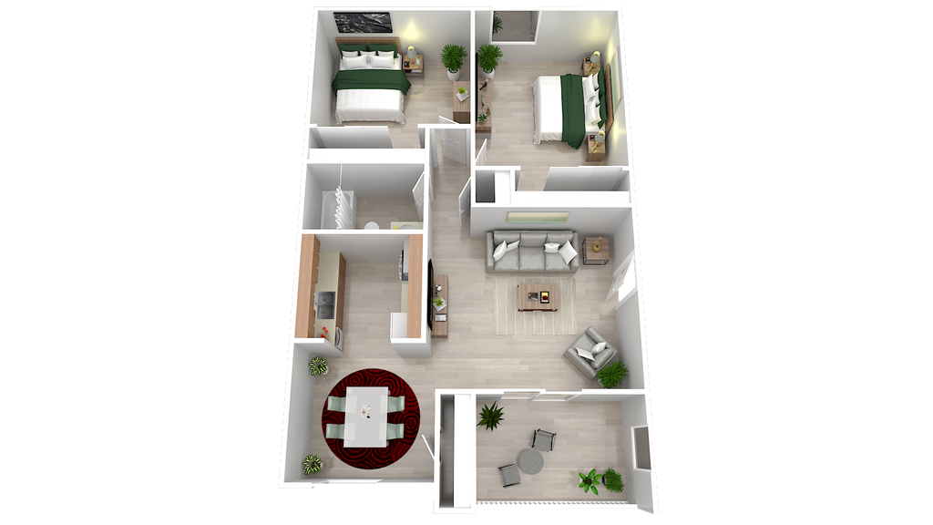 2 Dormitorios, 1 Baño, 753 pies²Galería del Modelo