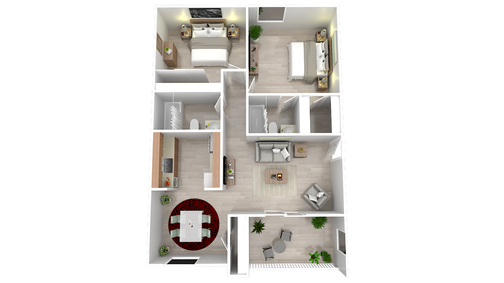 1 Dormitorio, 2 Baños, 868 pies²El más grandeEsta opción tiene las unidades más grandes para este modeloGalería del Modelo