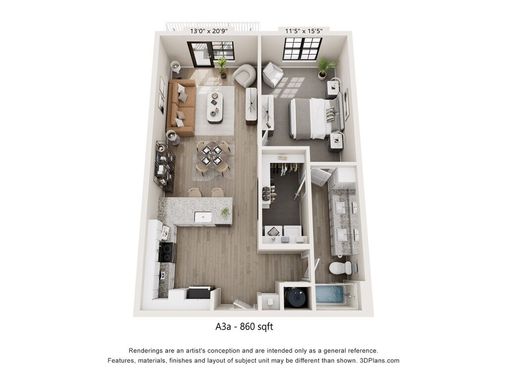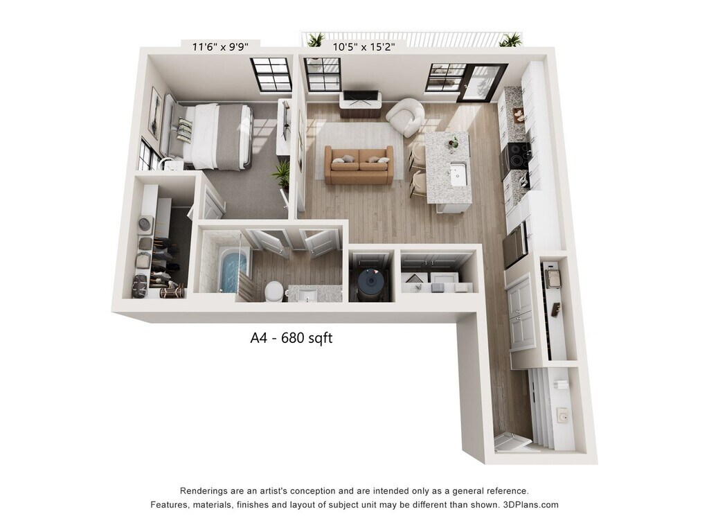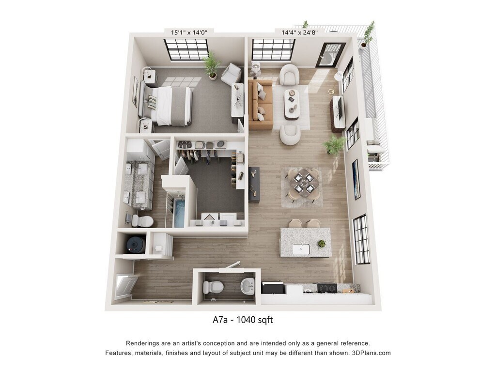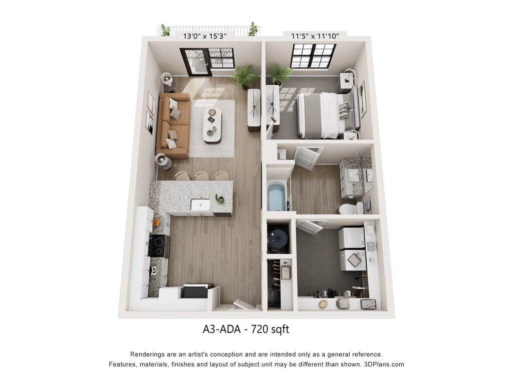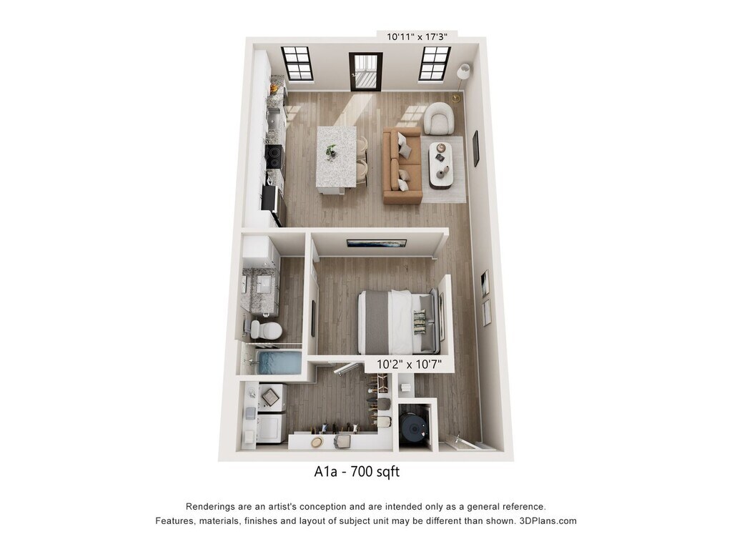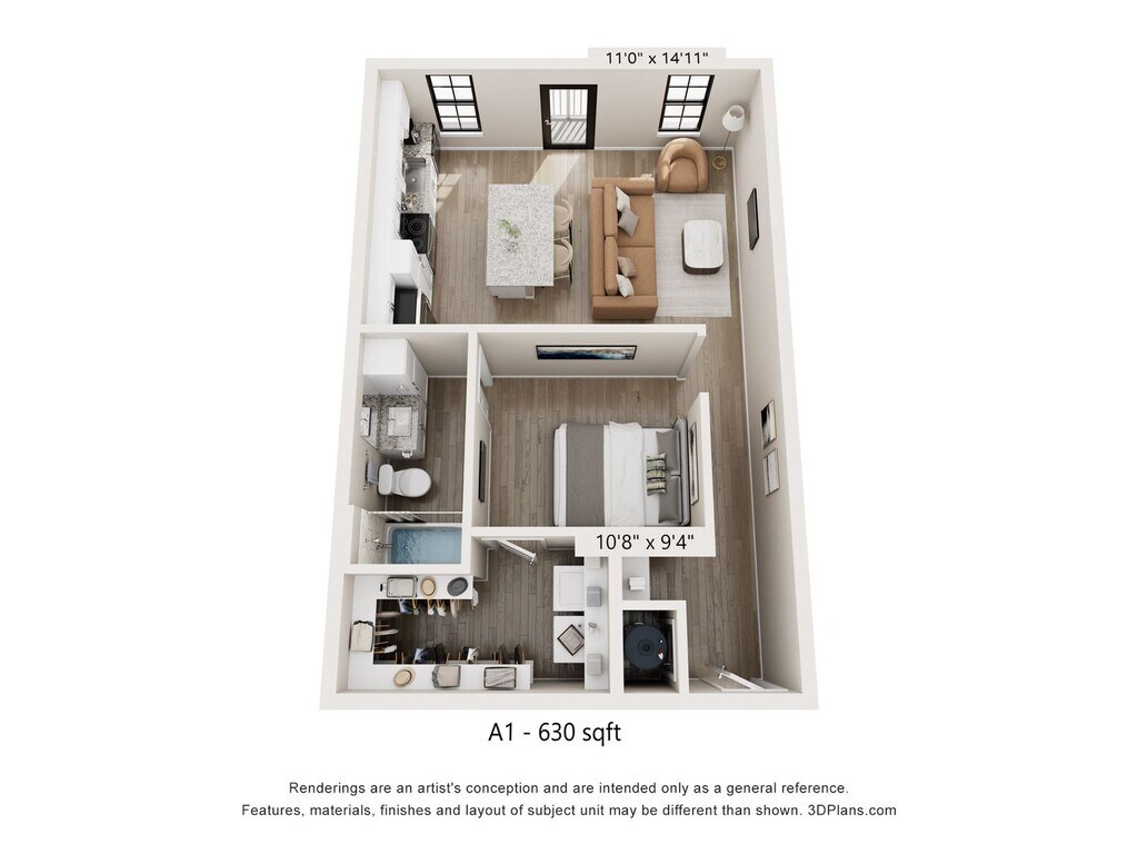 Modelo de apartamento: A1 - 0BD/1BADesde $1,575Estudio, 1 Baño, 630 sq ftDisponible December 15, 2025PlanosFotos![]()