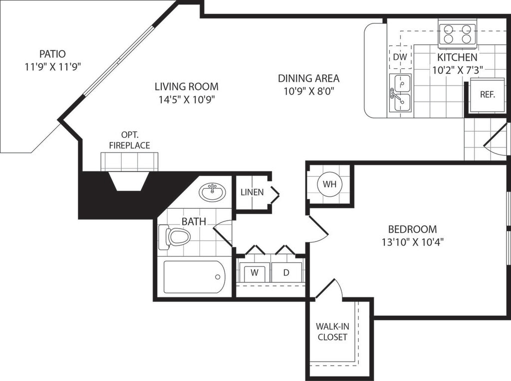 1 Dormitorio, 1 Baño, 890 pies²Disponible AhoraEl más grandeEsta opción tiene las unidades más grandes para este modeloGalería del Modelo