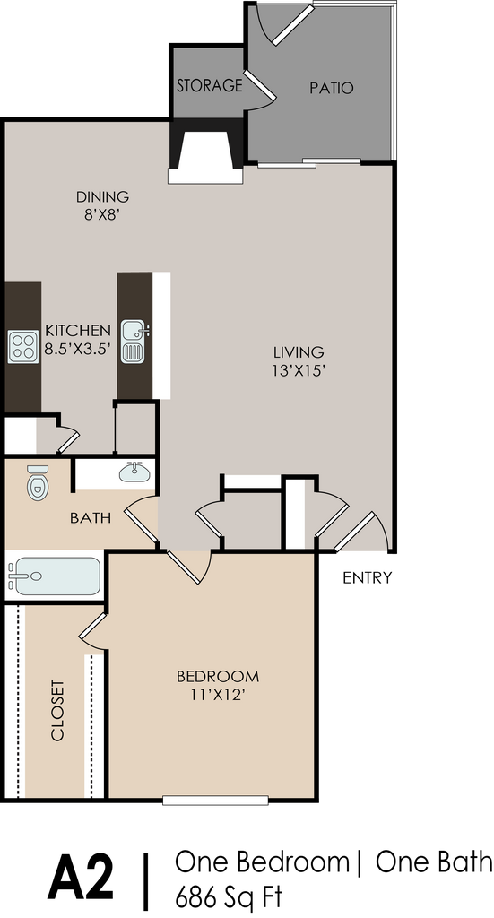 Modelo de apartamento: A2-PDesde $6281 Dormitorio, 1 Baño, 686 sq ftNo Disponible![]()