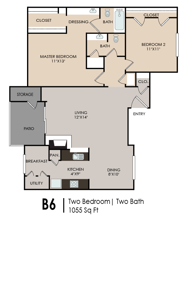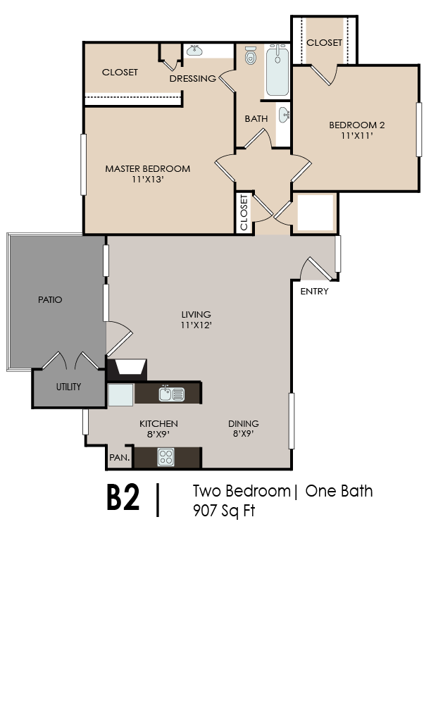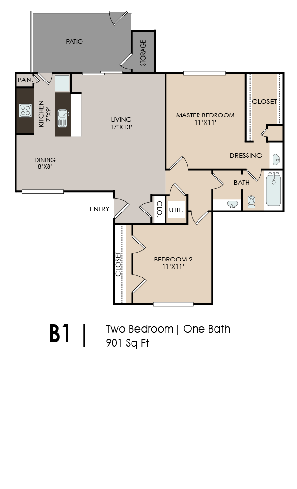 Modelo de apartamento: 1X1Desde $5761 Dormitorio, 1 Baño, 700 sq ftNo Disponible![]()