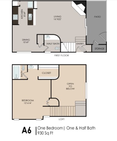 Modelo de apartamento: 1X1.5Desde $7791 Dormitorio, 1.5 Baños, 930 sq ftNo Disponible![]()