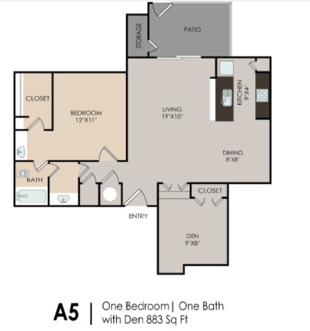 Modelo de apartamento: 1X1Llame para Precios1 Dormitorio, 1 Baño, 883 sq ftNo Disponible![]()