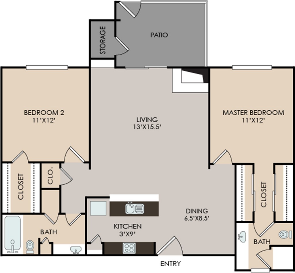 Modelo de apartamento: 1X1.5Llame para Precios1 Dormitorio, 1.5 Baños, 952 sq ftNo Disponible![]()