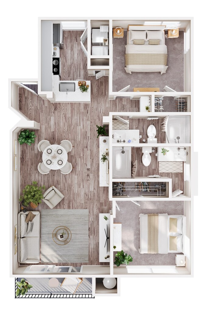 2 Dormitorios, 2 Baños, 1122-1172 pies²Disponible Nov 21Galería del Modelo