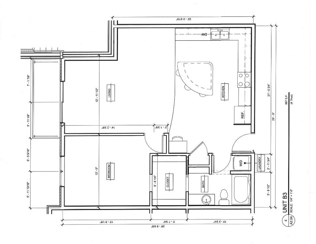 1 bed/1 bath B3 - Plano 1 2 Dormitorios