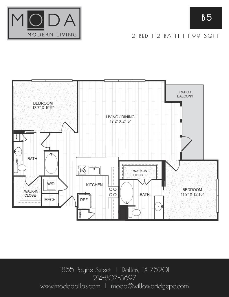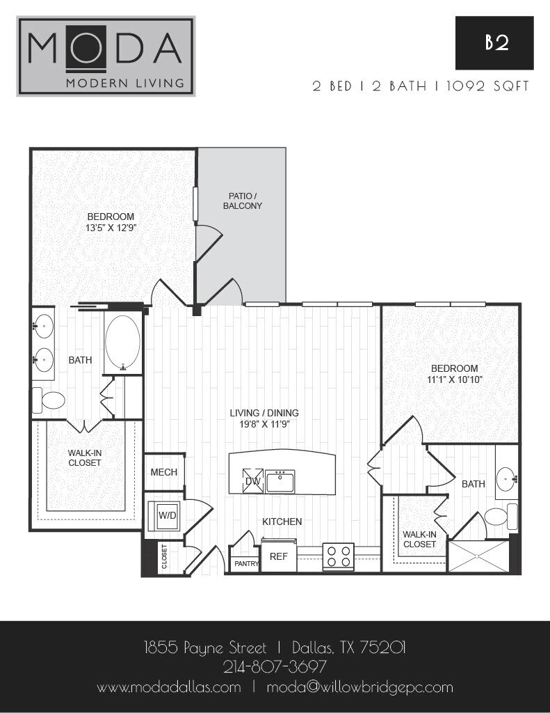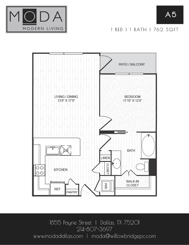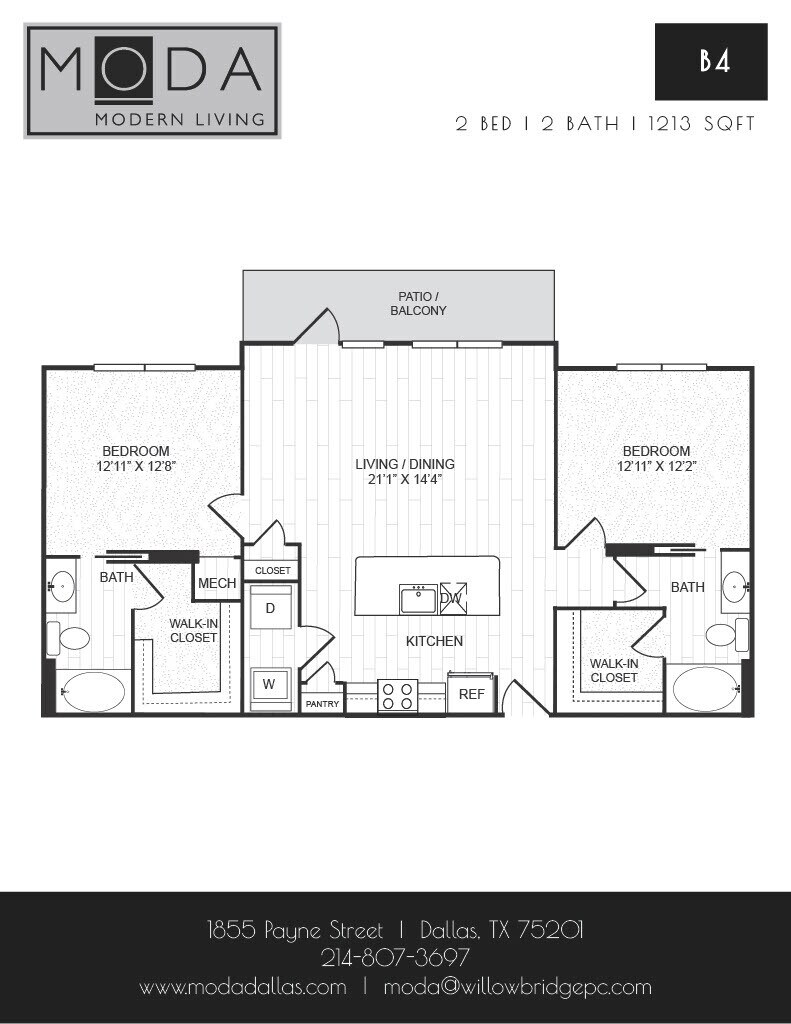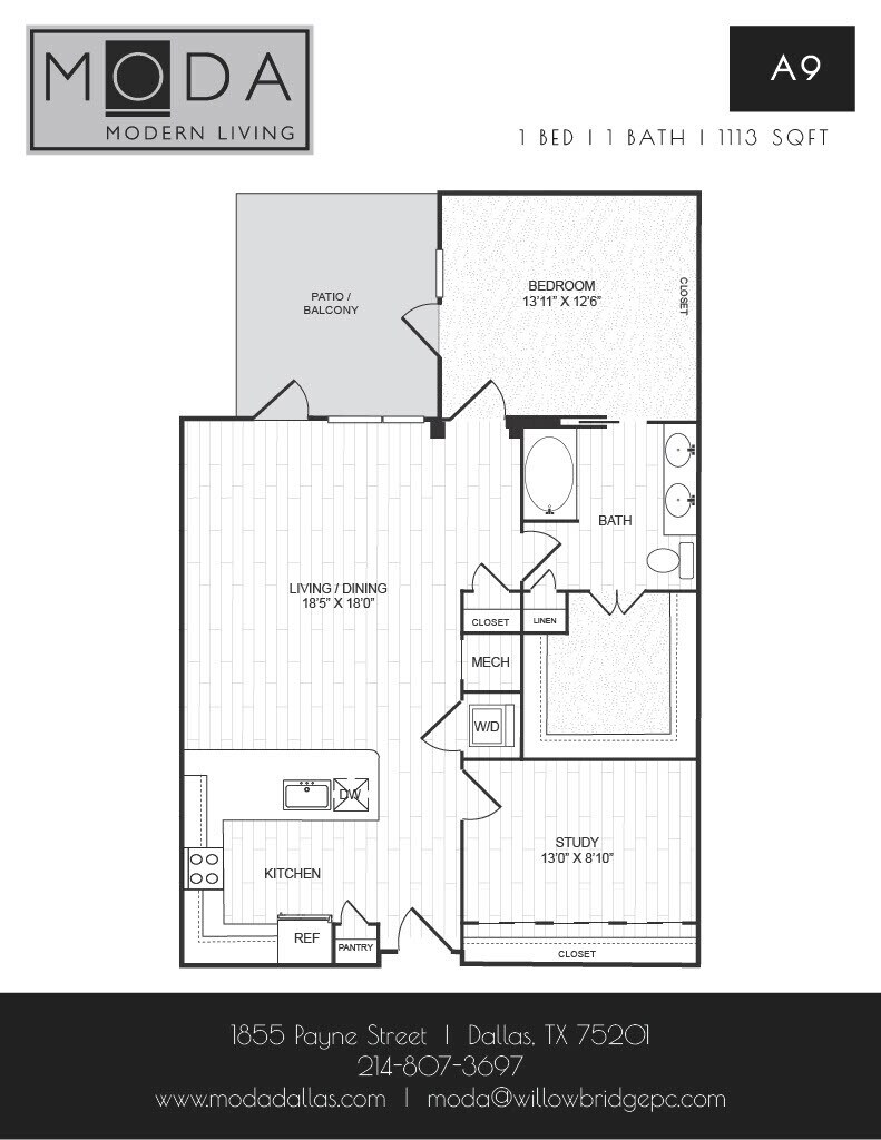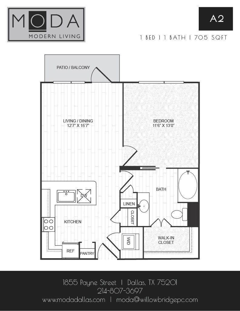 Moda Apartments se encuentra en el Barrio Victory Park y el código postal 75201 de Dallas, TX. Esta comunidad está gestionada profesionalmente por Willow Bridge Property Company