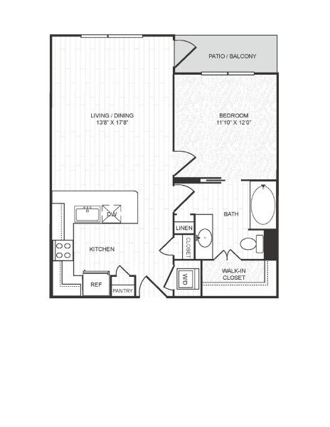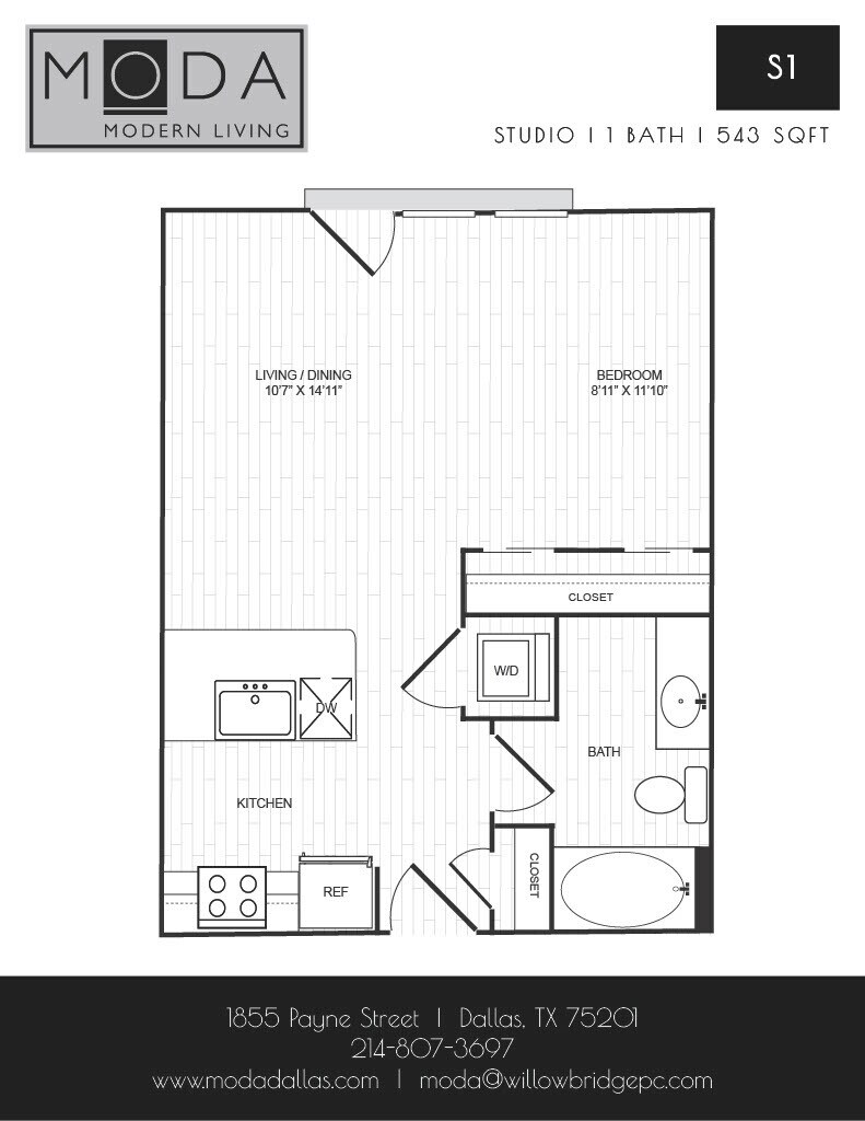 Modelo de apartamento: S1Desde $1,399Estudio, 1 Baño, 543 sq ftDisponible Ahora![]()