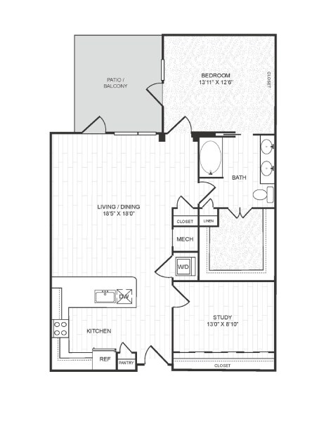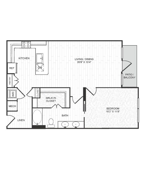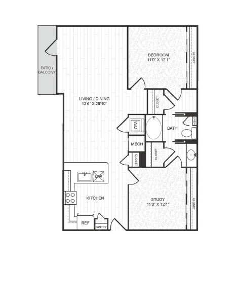 Modelo de apartamento: A8$2,2001 Dormitorio, 1 Baño, 1116 sq ftDisponible November 27, 2025![]()